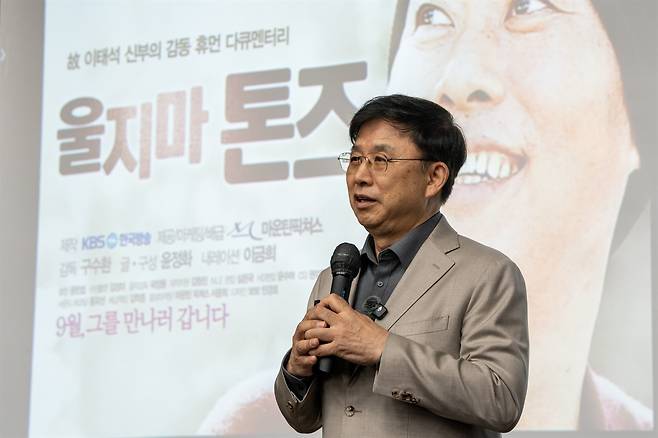 | ▲ 13일 서울 성북구 고려대학교 대강당 아주홀에서는 구수환 (사)이태석재단 이사장의 '종군기자와 이태석신부: 전쟁을 넘어, 인간을 보다!' 강연이 열렸다. 구수환 이사장이 강연을 하고 있는 모습. |