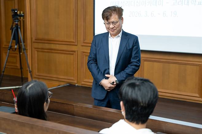 | ▲ 13일 서울 성북구 고려대학교 대강당 아주홀에서는 구수환 (사)이태석재단 이사장의 '종군기자와 이태석신부: 전쟁을 넘어, 인간을 보다!' 강연이 열렸다. 구진성 이태석리더십아카데미 원장이 학생들의 질문을 경청하는 모습. |