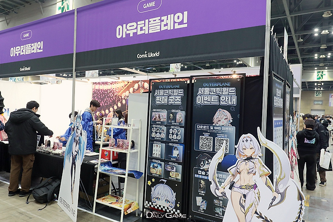 현장 부스는 '아우터플레인' 특유의 화려한 캐릭터 일러스트와 세계관을 반영한 디자인으로 꾸며졌다. 메이저나인은 부스를 방문한 이용자들을 위해 아크릴 스탠드, 캔뱃지, 장패드 등 게임 IP를 활용한 다채로운 한정 굿즈를 선보였다. 카드 결제 전용 창구를 운영하고 구매 금액에 따라 코스튬 플레이어와 폴라로이드 촬영 기회를 제공하는 등 현장 밀착형 이벤트를 진행해 눈길을 끈다.