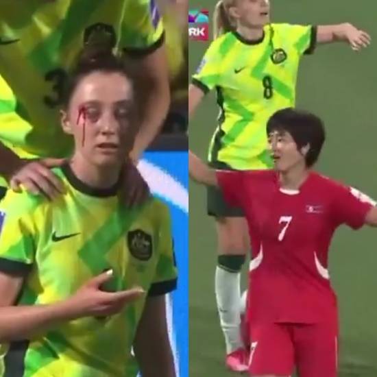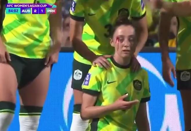 '상대 선수 피 철철' 북한 폭력 축구, AFC 왜 방관하나?…팔꿈치로 버젓이 '퍽'→호주 MF 이마 깨져→퇴장 아닌 경고 줬는데 "억울해" 황당 표정까지
