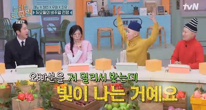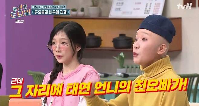이날 김지유는 '놀토'에 고백할 상대가 있다며 태연을 지목했다. 태연의 오랜 팬이라는 김지유는 "오늘도 태연 언니를 만난다고 하니 너무 떨려서 잠을 못 잤다"면서 팬심을 고백했다.