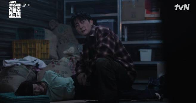 14일 tvN '대한민국에서 건물주 되는 법' 첫 회에선 요나(심은경 분)와의 대치 속 처남 균(김남길 분)을 잃는 수종(하정우 분)의 모습이 그려졌다.