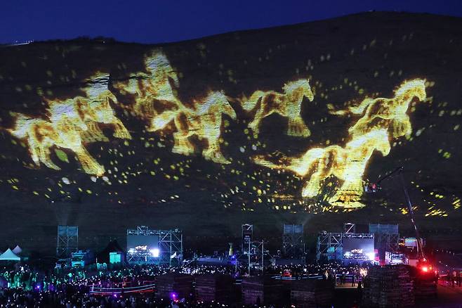희망기원 풍물대행진을 시작으로, 오름 전면을 캔버스 삼아 레이저와 불꽃이 결합한 융복합 미디어아트 쇼 ‘디지털 불놓기’가 밤하늘을 수놓았다.