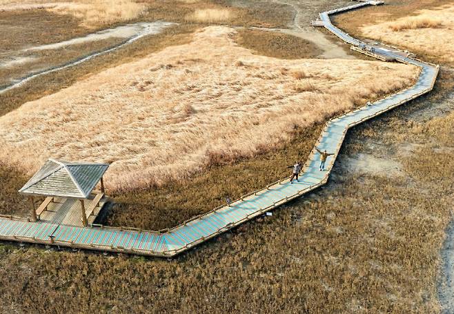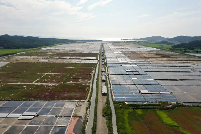 증도에는 여의도 면적의 약 2배(460만㎡)에 달하는 국내 최대 규모의 태평염전이 있다. 3km에 걸쳐 늘어선 소금밭과 60여 채의 소금 창고는 그 자체로 압도적인 시각적 리듬을 선사한다.