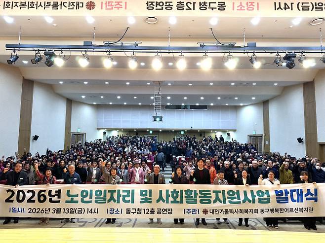 동구행복한어르신복지관(관장 김남흥)은 13일 오후 2시대전 동구청 12층 공연장에서 '2026년도 노인일자리 및 사회활동지원사업 발대식'을 성황리에 개최했다.
