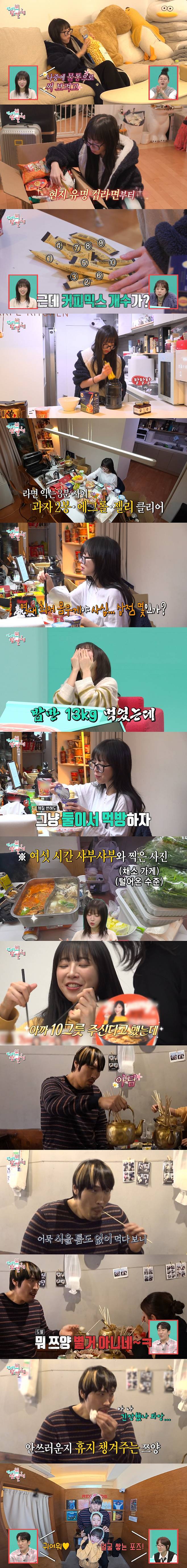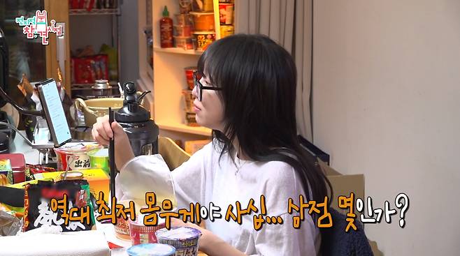 이어 서른 살을 맞아 쯔양의 아빠처럼 체질이 변해 살이 찔까 걱정하던 매니저 보란 듯, 각종 홍콩 컵라면과 과자, 15봉을 털어 넣은 1.7L 커피를 가뿐히 클리어했다. 전날엔 육수를 15번이나 추가해 6시간 동안 샤부샤부를 먹었다는 그녀는, 이토록 엄청난 섭취량에도 몸무게는 오히려 역대 최저치인 43kg을 찍었다는 놀라운 사실을 밝혀 참견인들도 충격에 빠졌다.