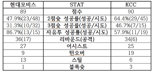 [현대모비스-KCC, 5라운드 맞대결 주요 기록]