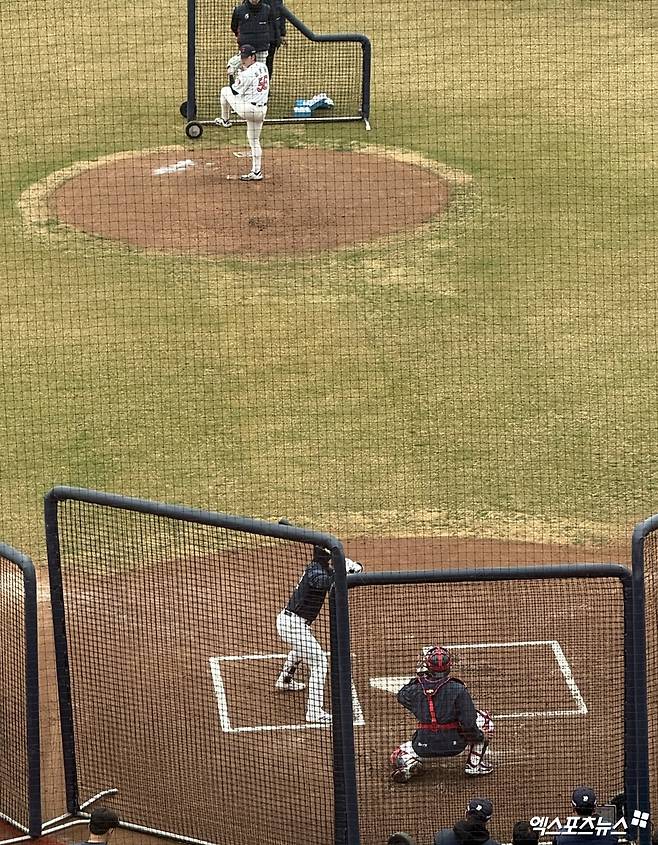 최준용은 15일 부산 사직야구장에서 열리는 LG 트윈스와 2026 신한 SOL Bank KBO 시범경기를 앞두고 타자를 세워놓고 하는 라이브 피칭을 진행했다.