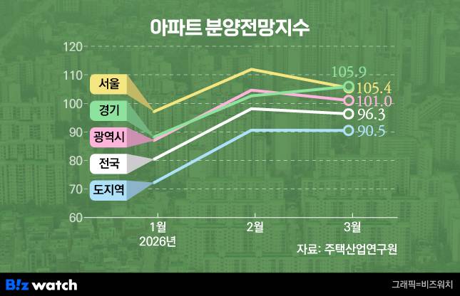 주택산업연구원에 따르면 3월 서울 아파트 분양전망지수는 105.4로 전월대비 6.9포인트 하락 전망됐습니다.
