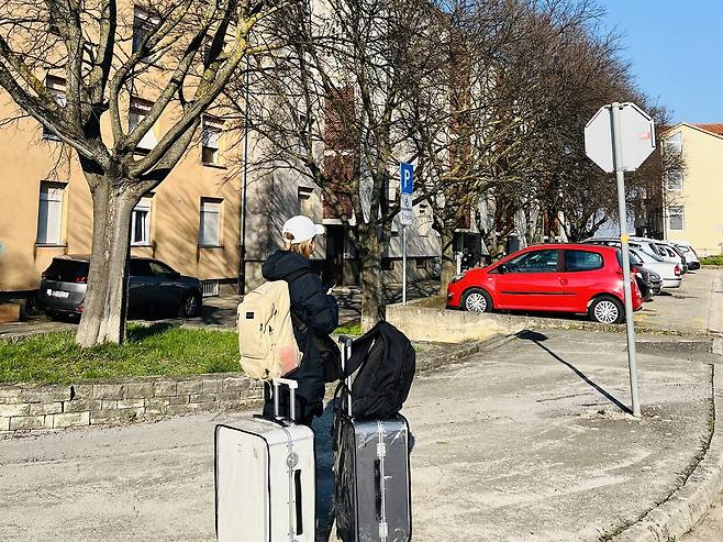 | ▲ 여행의 끝, 다시 한국으로 돌아가는 시간. 동유럽 여행의 마지막 자다르 숙소 앞. 택시를 기다리는 아내의 뒷모습에서 여행의 여운과 한국으로 돌아갈 설렘이 동시에 묻어난다. |
