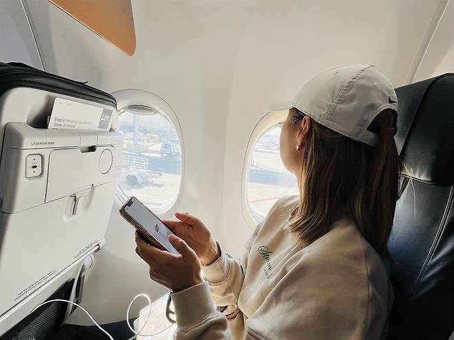 | ▲ 다시, 한국으로. 기내 창가에 앉아 출발을 기다리는 아내의 옆모습. 많은 일을 겪어내고 이제 한국으로 돌아가는 그녀의 얼굴에서 여행이 남긴 깊은 평화와 안도감이 느껴진다. 이번 여행으로 우린 더욱 단단해 졌다. |