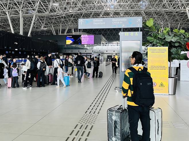 | ▲ 추억을 가득 담은 캐리어, 무겁지만 가벼운 발걸음. 자그레브 공항으로 들어서는 나의 뒷모습. 유럽의 돌길을 누볐던 캐리어는 이제 묵직한 추억으로 가득 찼지만, 앞으로 펼쳐질 양평에서의 삶을 생각하니 발걸음은 한결 가볍다. |
