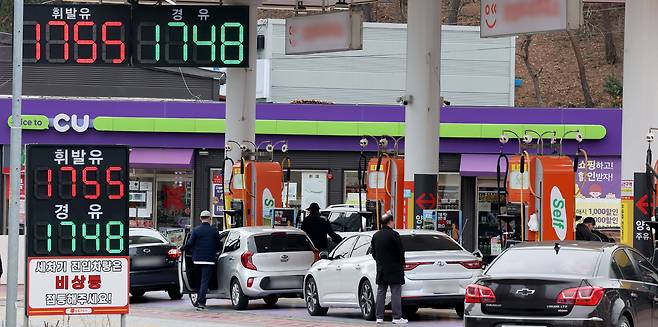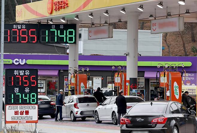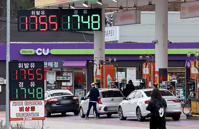 중동사태로 한때 2,000원 선을 위협했던 휘발유·경유 평균 가격이 지난 13일 석유 최고가격제 시행 후 내림세를 지속하고 있다. 15일 오후 포항시 북구 장성동 한 주유소에서 휘발유 1,755원, 경유 1,748원에 판매되고 있다. /이용선기자 photokid@kbmaeil.com