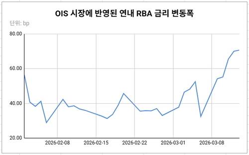 '긴축 대표주자' RBA, 이달 추가 인상 가능성 60% 넘어