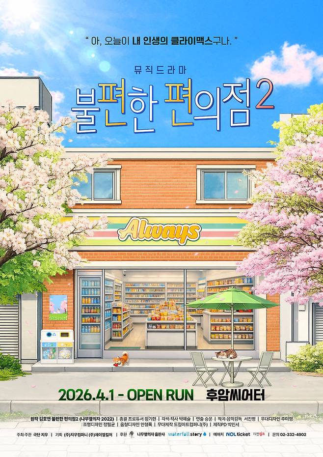 공연 주최 측은 "뮤직드라마 '불편한 편의점2'는 바쁜 일상 끝에 잠시 멈춰 설 쉼표가 필요한 관객들에게 올 봄 대학로에서 조용히 스며드는 공감과 따뜻한 밤을 선물할 것"이라고 전했다.