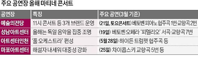 성남아트센터도 마티네 콘서트에 있어선 소문난 강자다. 2006년 이후 올해로 21번째 시즌을 맞는다. 3월부터 12월까지 매월 셋째 주 목요일 오전 11시에 열린다. 2021년부터는 한 나라의 음악 전통을 집중 조명하는 콘셉트를 도입, 프랑스·영국·이탈리아·체코·오스트리아를 차례로 소개해 왔다. 올해의 여행지는 독일이다.
