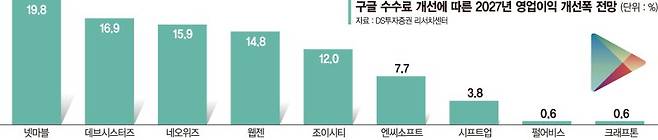 미래에셋증권은 구글 정책 변화에 따른 넷마블의 지급수수료 절감 규모가 2026년 약 300억원, 2027년에는 약 1000억원에 이를 것으로 추정했다. 최승호 연구원은 보고서에서 "구글 수수료 인하가 적용될 경우 2027년 게임사 평균 영업이익은 0~20% 증가하고 영업이익률은 0~3%포인트 개선될 것"이라고 전망했다. 기업별 효과는 모바일 매출 비중과 자체 개발 게임 비중 등에 따라 달라질 것으로 보인다.