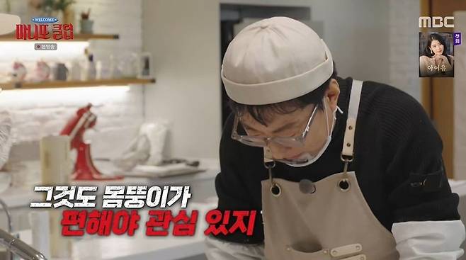 그러면서도 정해인은 고기 태운 걸 떠올리며 "난 고기만 안 태우면 된다. 너무 스크래치다. 고기를 잘 굽는다고 자부심을 가지고 살았는데, 아까 테스트하면서 탔다"라고 침울해졌다. 정해인은 "저희 칼국수 반죽을 해야 하지 않냐"라고 물었고, 이미 진행되고 있단 말에 놀랐다.