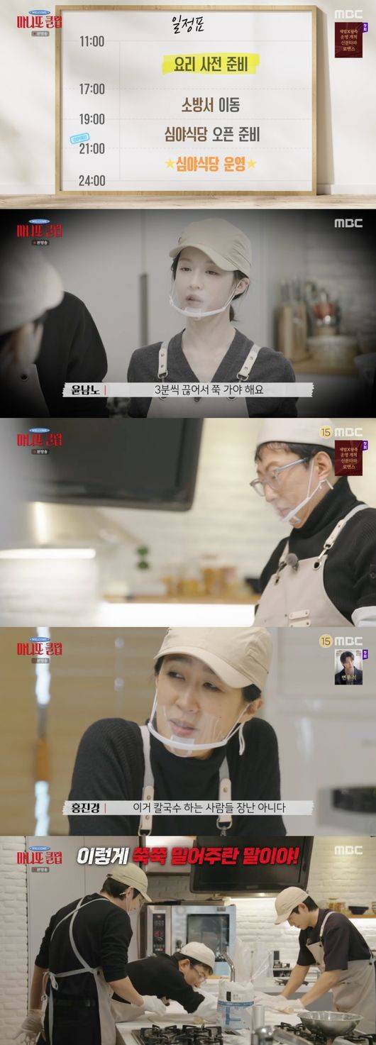 15일 저녁 방송된 MBC 예능 프로그램 '마니또클럽'에서는 배우 고윤정, 김도훈, 정해인과 방송인 박명수, 홍진경 그리고 셰프 윤남노가 소방관들을 위한 구내식당을 여는 시크릿 마니또 미션에 돌입했다.