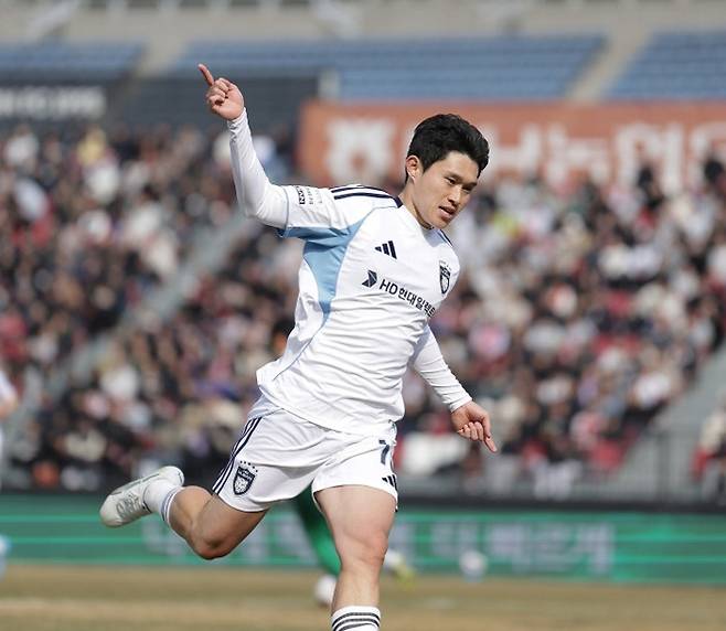 부천은 전반 8분 김민준의 선취골로 앞서갔다. 역습 상황에서 티아깅요가 측면에서 올린 크로스를 김민준이 다이렉트 슈팅으로 연결했다. 2021년 울산에서 K리그 무대에 데뷔해 53경기 동안 7골 1도움을 기록한 뒤 지난해 강원FC로 이적했다가 올해 부천에 둥지를 튼 김민준의 ‘부천 데뷔골’이었다.