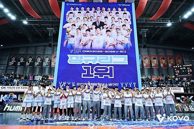 한편 대한항공은 이날 경기 후 원정 경기장에서 정규리그 1위 시상식을 치렀다.