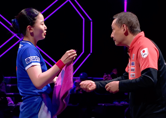 이후 서브 앤 어택 전략을 강화한 콰이만이 11-9로 2게임을 따냈고, 3게임에서도 하리모토의 포핸드 코너를 집중 공략하며 11-7로 승리해 경기 전적을 2-1로 뒤집었다.