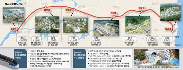 춘천~속초 동서고속화철도는 2029년 개통을 목표로 공사가 진행 중이다. 기존 춘천역을 비롯해 화천역·양구역·인제역·백담역·속초역 등 5개 역이 새로 들어선다.