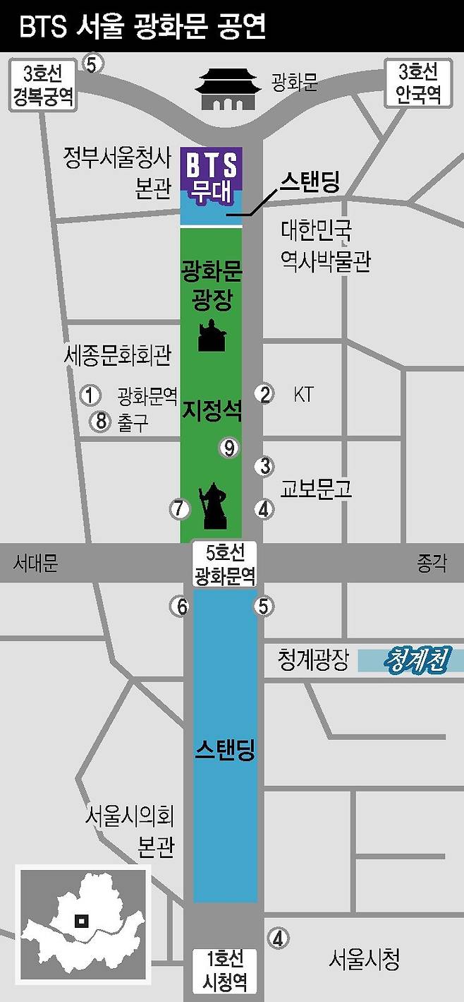 - BTS ‘왕의 귀환’…광화문부터 시청역까지 1㎞, 거대한 공연장으로 바뀐다