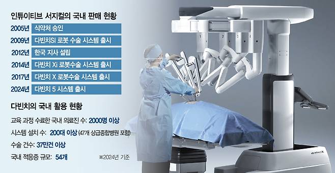 전 세계적으로 최소침습 로봇수술 수요가 늘면서 다빈치 시스템 설치가 확대된 데다 로봇 점검, 부품 교체, 의사 교육 서비스 등의 서비스가 매출로 연계되며 외형 성장세가 더욱 가팔라진 것으로 분석된다. 국내의 경우 세브란스병원이 2005년에 처음 도입한 이후 인튜이티브 서지컬은 20년 넘게 사실상 국내 시장을 독점하고 있다. 현재 삼성서울병원과 서울아산병원, 서울성모병원 등 국내 주요 대형 병원들은 암 수술 등에 다빈치를 필수적으로 운영 중이다. 이에 따라 이들 기관에서 로봇 수술을 집도하는 핵심 의료진과 병원 관계자 대다수가 피해 범위에 포함됐을 가능성이 높다.