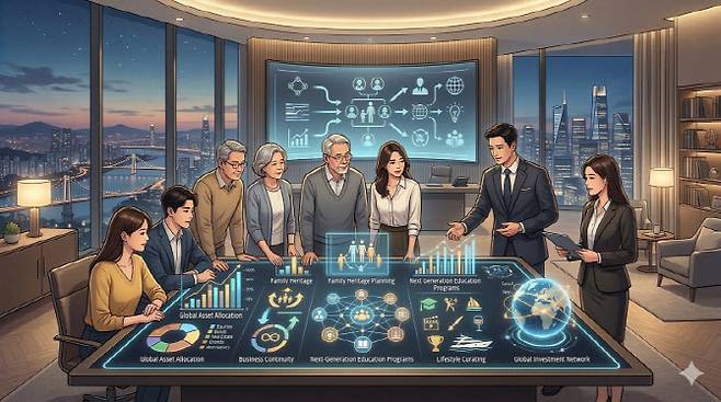 가문의 영속성을 돕는 2·3세 교육 프로그램 역시 필수 요소다. 신한의 ‘넥서스 클럽’이나 하나의 ‘차세대 세미나’, NH의 ‘N2, 넥스트 리더스 포럼’ 등은 경제 교육을 넘어 비슷한 수준의 가문끼리 교류할 수 있는 인적 네트워크를 형성해 주며, 차세대 경영인이 관리 철학을 미리 체득하도록 지원한다.