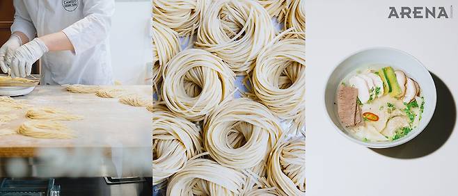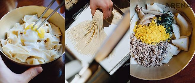 한국인의 면 사랑은 예부터 남달랐다. 최초의 배달 음식부터 면이었다. 조선시대에는 해장국의 일종인 '효종갱'을 배달로 즐겼다는 설이 있지만, 사실 최초의 배달 음식은 냉면이었다고 한다. 그 기록은 조선 후기 실학자 황윤석이 53년간 쓴 일기 <이재난고>에 남아 있다. 그는 1768년 한양으로 과거 시험을 보러 가서 친구들과 냉면을 배달해 먹었다고 한다. 조선시대 문신 이유원이 쓴 <임하필기>에는 1800년대 순조가 달 구경을 하다 냉면을 사 오라는 지시를 내렸다는 기록이 있다. 한국의 면 문화는 근대화를 거치며 변해갔다. 과거 고급 음식으로 통하던 면 요리는 일제강점기와 한국전쟁을 겪으며 맥이 끊겼고, 가난한 시절 서민이 '배불리 먹을 수 있는 음식'으로서 새로운 역할을 맡았다. 메밀 대신 구호물자인 밀가루로 만들어 먹은 부산 밀면이 대표적이다. 전쟁은 끝나고, 시대는 변했지만, 여전히 우리는 면을 사랑한다. 기쁜 날, 울적한 날, 특별한 날, 평범한 날에도 우리는 면을 찾는다. 이번 기사가 실리는 <아레나> 3월호는 20주년을 기념하는 창간호다. 잔칫날 손님들에게 잔치국수를 대접하듯, 이 책을 읽는 독자들에게도 행운을 기원하고 싶었다. 그 마음을 담아 다녀온 한국식 국숫집.