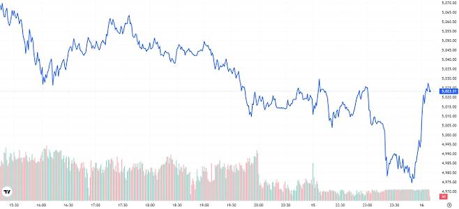 현재 국제 금시세(금값) 기준 5,017.13달러에 거래되고 있으며, 이전 거래일 종가 5,095.72달러 대비 78.58달러(등락률 -1.542%) 하락했다.