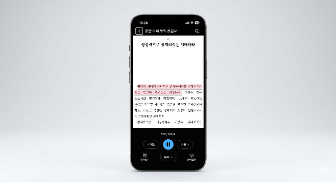 이 기능은 iOS의 Voice-Over 기반 음성 안내를 지원해 화면을 보지 않고도 전자책을 이용할 수 있도록 돕는다.