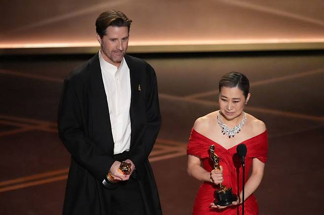 공동연출을 맡은 매기 강 감독은 아카데미에서 장편애니메이션상을 받은 첫 번째 한국계 연출가가 됐다. 범위를 아시아계로 넓히면 세 번째가 된다. 앞서 일본 미야자키 하야오 감독이 2003년 '센과 치히로의 행방불명', 2024년 '그대들은 어떻게 살 것인가'로 두 차례 수상한 적이 있다.