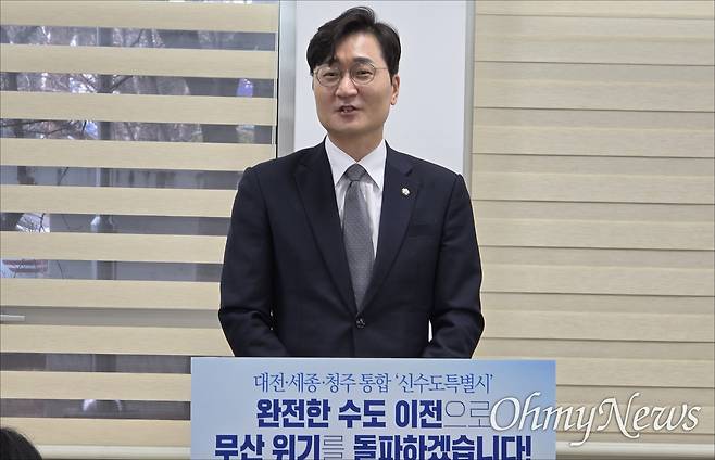 | ▲ 더불어민주당 장철민(대전 동구) 의원이 16일 오전 대전시의회에서 기자회견을 열어 "대전·세종·청주를 통합해 '신수도특별시'로 만들자"고 제안했다. |