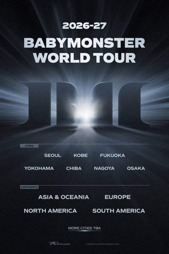 이날 공개된 포스터에 따르면 베이비몬스터는 서울을 시작으로 일본 6개 도시(고베·후쿠오카·요코하마·치바·나고야·오사카)로 향한다. 또한 아시아, 북미를 비롯 데뷔 이래 처음으로 방문하는 오세아니아, 유럽, 남미까지 총 5개 대륙에서 공연을 펼칠 계획이다.