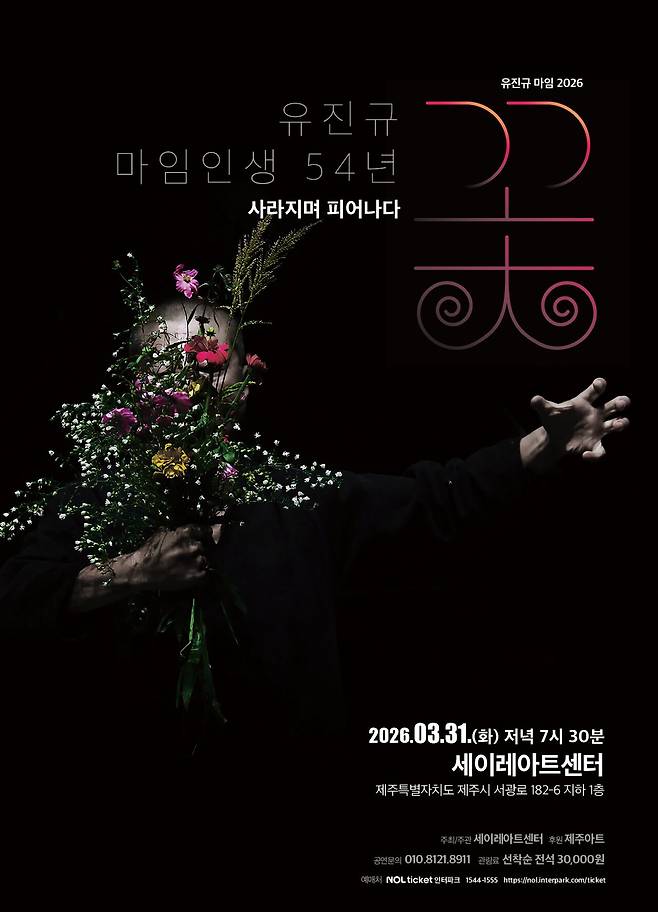 세이레아트센터는 오는 31일 오후 7시 30분 세이레아트센터(서광로 182-6, 지하 1층)에서 마임 인생 54년을 맞은 유진규 마임이스트 초청 공연 '사라지며 피어나다: 꽃'을 연다.