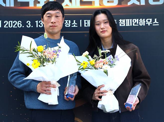 | ▲ 사제지간 수상도 있었다. 2025년과 2026년 주니어 컬링 세계선수권에서 2연패를 달성한 전북도청 권영일 감독과 강보배 선수. |