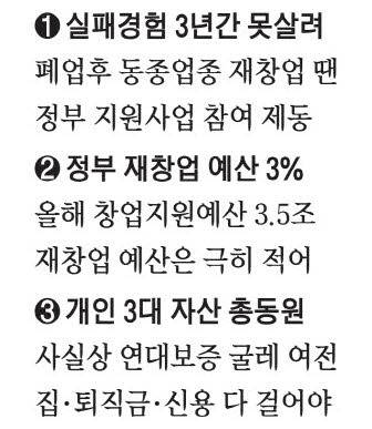 재도전 막는 '3대 허들' … 동종업종 제한·쥐꼬리 지원·꽉막힌 돈줄