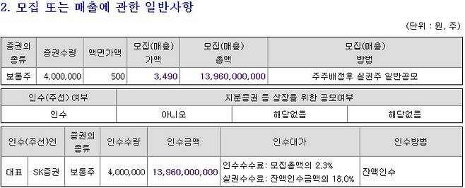 인수인은 SK증권(001510)이다. 청약일은 4월 22~23일, 납입일은 4월30일이다.