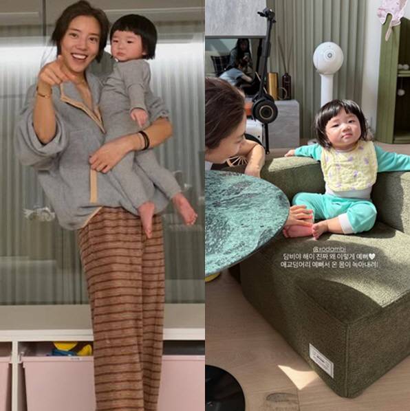 공개된 사진에는 딸을 품에 안은 채 환한 미소를 짓고 있는 손담비의 모습이 담겼다.