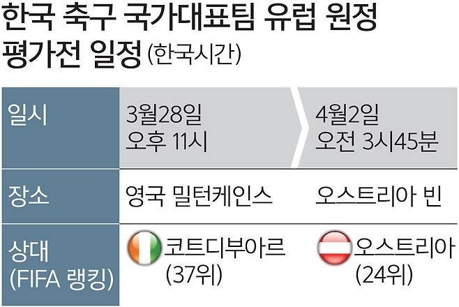 코트디부아르는 A조에 함께 편성된 남아프리카공화국에 대비한 아프리카팀, 오스트리아는 아직 결정되지 않은 유럽 플레이오프 패스D(덴마크, 체코, 아일랜드, 북마케도니아)를 염두에 둔 맞상대다.