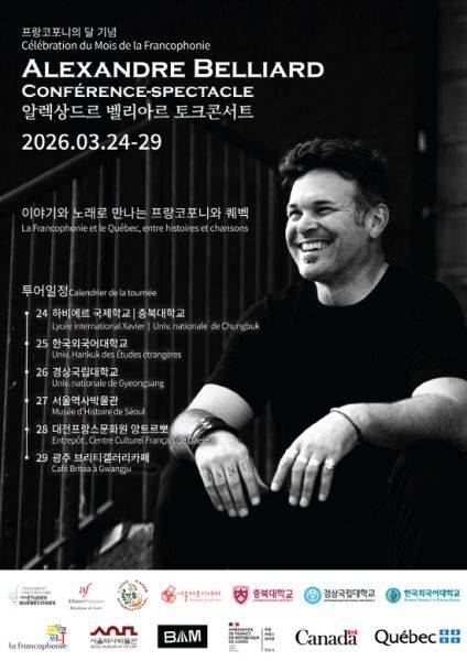 이번 토크콘서트는 프랑스어권 아메리카의 역사와 문화를 음악과 이야기로 만나는 특별한 자리로, 학생들과 대학 구성원, 지역민들에게 프랑스어권 문화의 다양성을 이해하는 기회가 될 것이다.