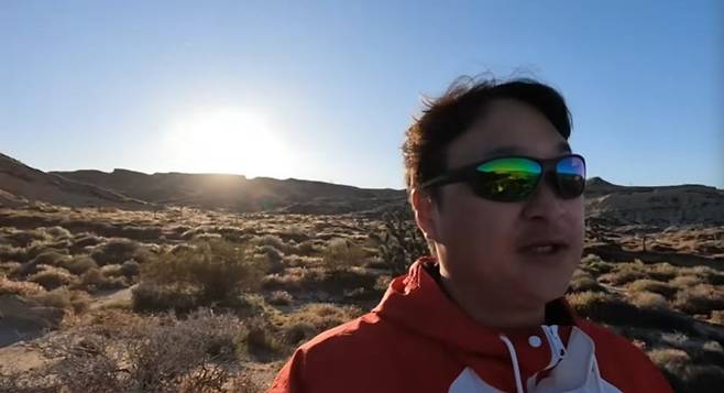 인적 없는 길을 걸으며 그는 "갑자기 곰이 나올 수도, 뱀이 나올 수도 있다. 미국 영화를 보면 꼭 이런 사막에서 살인사건이 나곤 하더라"고 너스레를 떨었다. 이어 "미국이란 나라가 정말 넓은 게 휴대폰도 안 터진다. 서비스 불가라고 나온다. 이런 데 올 때는 항상 자기 소지품을 챙겨야 한다. 혹시라도 잃어버리면 도와줄 사람도 없고 큰일 난다"고 덧붙였다.
