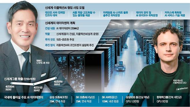 신세계는 16일(현지시간) 미국 샌프란시스코에서 테크기업 '리플렉션AI'와 손잡고 최소 10조원 이상 대규모 자본이 투입되는 250㎿급 AI 데이터센터를 구축하겠다고 선언했다. 이 같은 규모는 일반 데이터센터 대비 6배가 넘고 국내에서 추진되고 있는 사업 중에는 최대다. 신세계는 정확한 투자 규모를 공개하지 않았으나 10조~20조원이 들어갈 것으로 업계에서는 보고 있다. 데이터센터에는 엔비디아 그래픽처리장치(GPU)가 탑재될 예정이다. 두 회사는 연내 합작법인(JV)을 세워 사업을 추진한다.