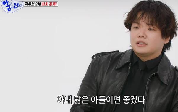 이를 본 출연진들은 “아빠 판박이다”라고 반응했고, 곽튜브는 아내와의 러브스토리도 공개했다. 그는 “소개팅으로 만났다. 그때는 구독자가 거의 없을 때였다”며 “아내의 이상형이 정형돈이었다. 귀엽고 재밌는 사람을 좋아한다고 해서 첫 만남에서 3시간 동안 개그쇼를 했다”고 밝혀 스튜디오를 웃음바다로 만들었다.
