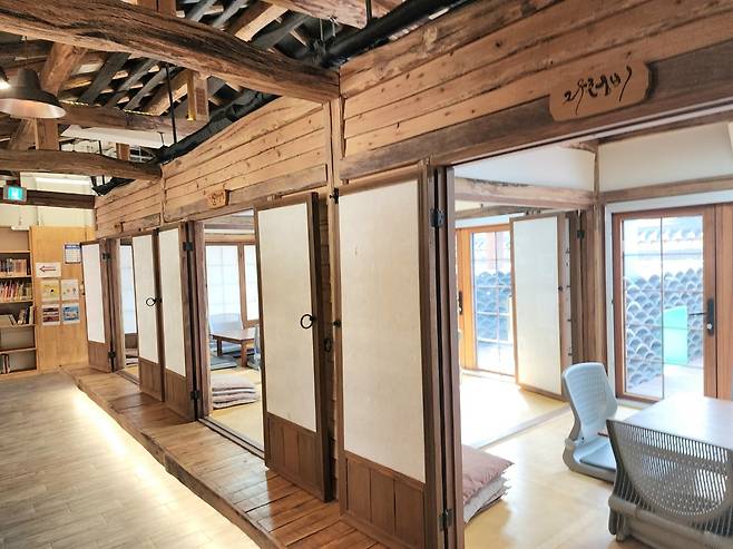 기와 담벼락 쪽에는 다섯 개의 방이 이어져 있다. 이 방들은 장지문으로 연결되어 있어, 문을 열면 하나의 넓은 공간으로도 쓸 수 있다. 프로그램 참여 인원에 따라 방의 크기를 조절할 수 있어 실용적이다.