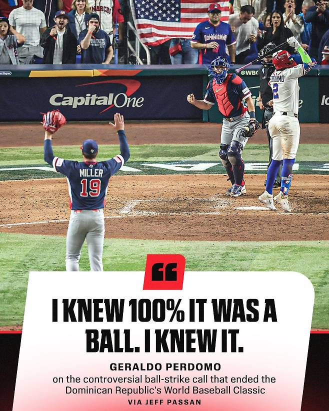 또 다른 매체 '스포팅 뉴스' 역시 "도미니카공화국이 반격 기회를 이어갈 수도 있었던 상황에서 심판의 판정이 승부를 끝내버렸다"며 "마지막 공의 위치를 두고 팬들과 전문가들 사이에서 논쟁이 이어지고 있다"고 설명했다.