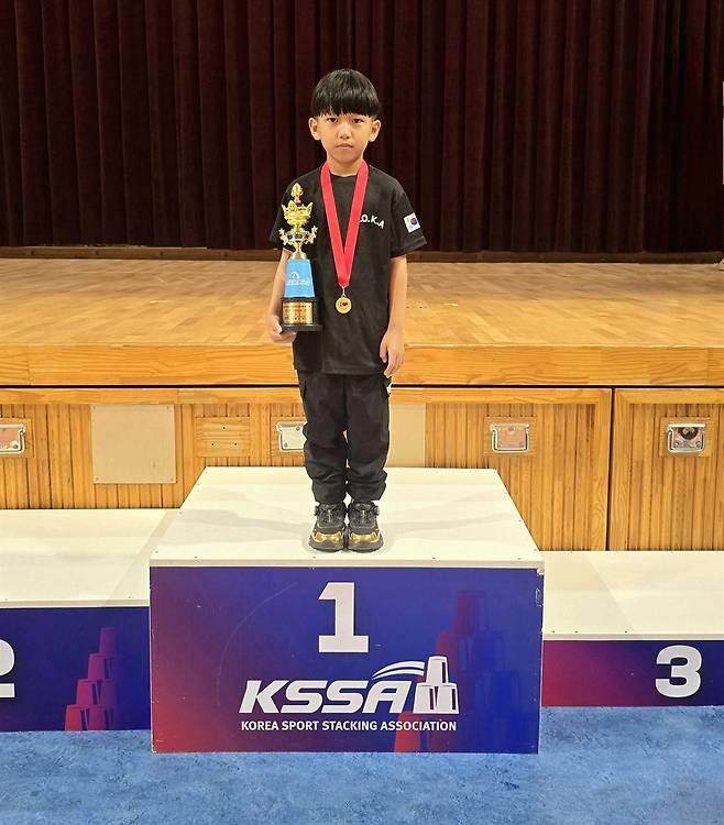 | ▲ 스포츠스태킹 국가대표 선발전 1차 대회에서 우승한 조건형군. 현재 2·3차 선발전을 앞두고 있다. |