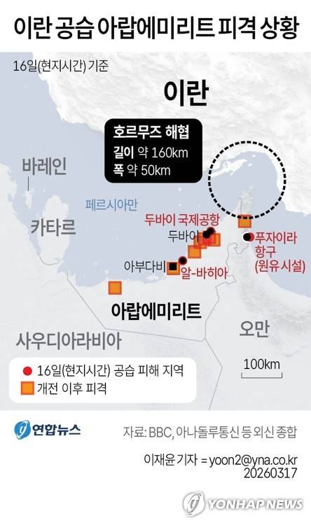 [그래픽] 이란 공습 아랍에미리트 피격 상황